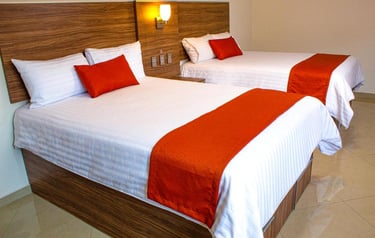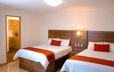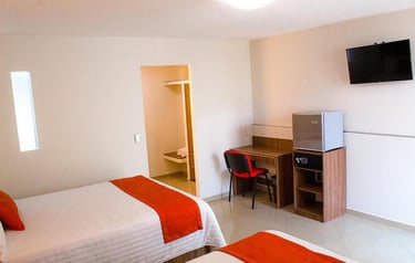 Amplia y confortable, la Habitación Familiar es ideal para familias o grupos que buscan espacio y comodidad. Equipada con dos camas matrimoniales, baño privado, wifi gratuito y TV de pantalla plana, ofrece también un escritorio con internet de alta velocidad y caja de seguridad con espacio para laptop. Un ambiente pensado para que todos disfruten su estancia con tranquilidad.